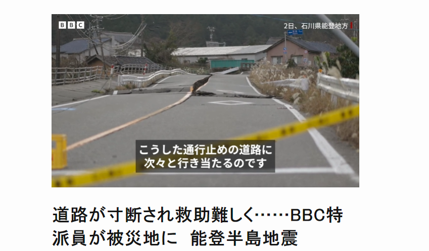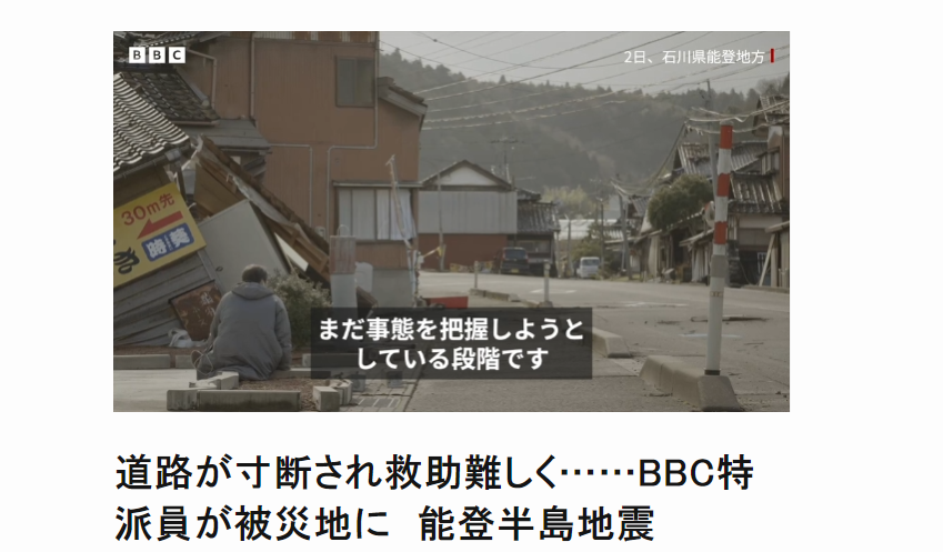 BBC、クソの役にも立たないメディアを差し置き、能登入りし正確な情報を発信www