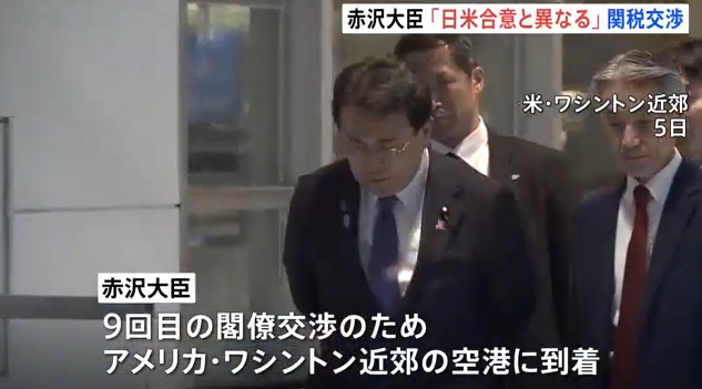 赤沢大臣は5日、9回目の閣僚交渉のためワシントン近郊の空港に到着しました。