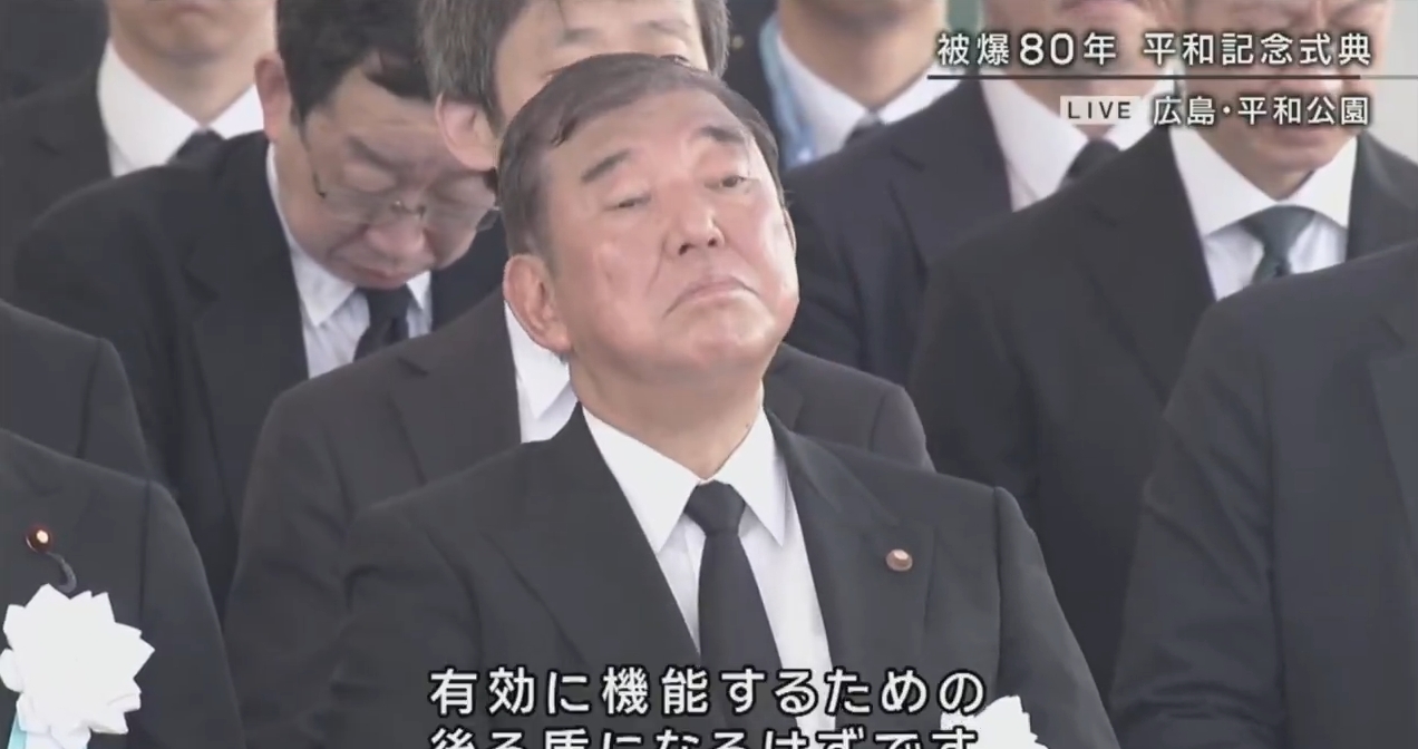 6日に広島市で営まれた「原爆死没者慰霊式・平和祈念式」(平和記念式典)で、石破茂首相が居眠りしているとみられる動画が交流サイト(SNS)上で拡散され、波紋を広げている。林芳正官房長官は7日の記者会見で、首相の居眠りを否定した。「式典での首相の様子について詳細は把握していない」としつつ、居眠りの「事実はない」と語った。