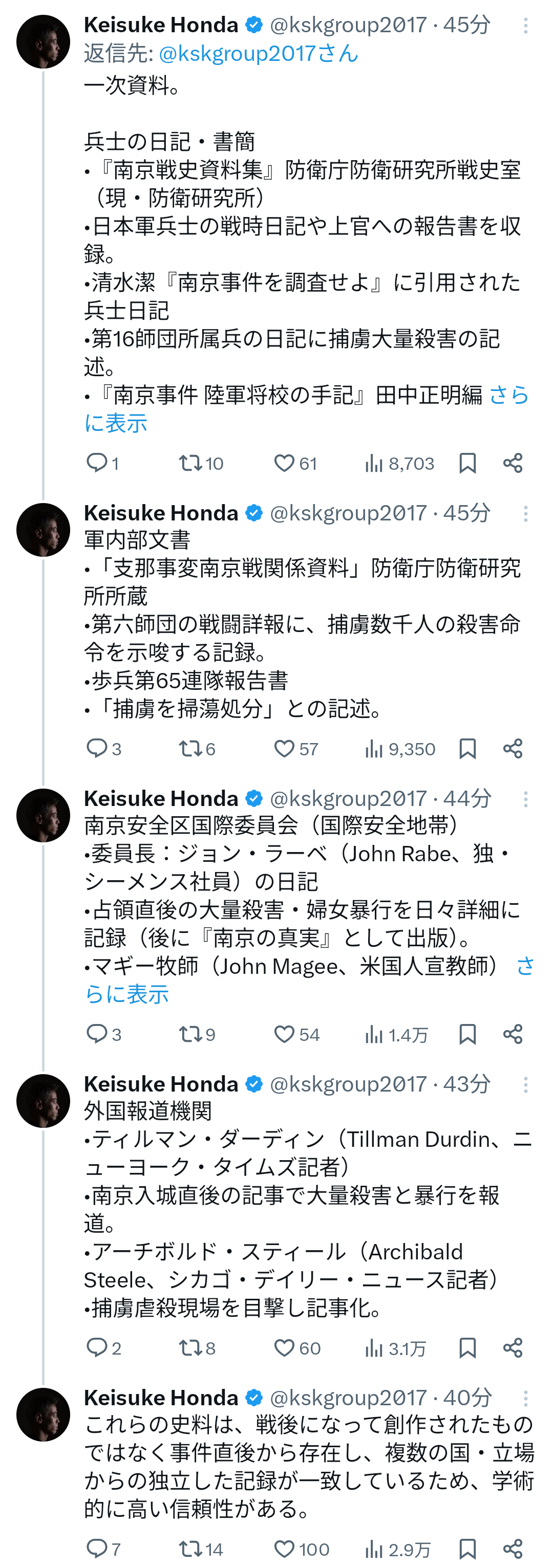 【速報】ケイスケホンダ「南京大虐殺はなかったと信じてる」→批判殺到→ケイスケホンダ「ちゃんと調べたら南京大虐殺は事実だと分かりました」 2025年8月9日 最終更新日時 : 2025年8月9日 loki.5ch.net カープドラ6西川篤夢!「日本を代表する遊撃手になりたい」【ドラフト会議2025】 カープドラ5赤木晴哉!191cm最速153キロ!佛教大の本格派右腕!【ドラフト会議2025】 カープドラ4工藤泰己!159キロ北の剛腕!【ドラフト会議2025】 カープドラ3勝田成!近畿大163cmセカンド!菊池涼介の後継者候補!【ドラフト会議2025】 カープドラ2齊藤汰直!亜大152キロエース!【ドラフト会議2025】 カープドラ1平川蓮!187cmのスイッチヒッター!立石正広を外し2度目の重複も新井監督がクジを引き当てる!【ドラフト会議2025】 【カープ実況】ドラフト会議2025!ドラ1立石正広の獲得なるか 緒方孝市カープドラ3指名で青学出禁!澤﨑俊和の逆指名まで10年間スカウト出禁 【朗報】広島、攻守最強都市だったwww 【悲報】彼女「ごめん!俺くんの貯金、情報商材に使っちゃった」→…問い詰めたらギャン泣きされたんだが俺が悪いのか? 【速報】ケイスケホンダ「南京大虐殺はなかったと信じてる」→批判殺到→ケイスケホンダ「ちゃんと調べたら南京大虐殺は事実だと分かりました」 1: 名無し 2025/08/09(土) 17:02:11.16 ID:fqAzUZPU0 ケイスケホンダ「ちゃんと調べたら南京大虐刹は事実だと分かりました。以前の僕のコメントは間違いでした。勉強するきっかけをいただき、ありがとうございました」 ↓ ■応援クリック感謝 インド「日本はアジアで最も偉大な国、我々を解放して発展させてくれた」 中部空港で「白タク」か ベトナム国籍の男を逮捕 SNSで知り合ったベトナム人を運賃もらう約束で自家用車に乗せた疑い 「納得できない」と容疑を否認 海外「これはガチ!」日本を旅行した外国人の体に起きる異変に海外が大騒ぎ 続きを読む 続きを見る カープドラ6西川篤夢!「日本を代表する遊撃手になりたい」【ドラフト会議2025】 カープドラ5赤木晴哉!191cm最速153キロ!佛教大の本格派右腕!【ドラフト会議2025】 カープドラ4工藤泰己!159キロ北の剛腕!【ドラフト会議2025】 カープドラ3勝田成!近畿大163cmセカンド!菊池涼介の後継者候補!【ドラフト会議2025】 カープドラ2齊藤汰直!亜大152キロエース!【ドラフト会議2025】 カープドラ1平川蓮!187cmのスイッチヒッター!立石正広を外し2度目の重複も新井監督がクジを引き当てる!【ドラフト会議2025】 【カープ実況】ドラフト会議2025!ドラ1立石正広の獲得なるか 緒方孝市カープドラ3指名で青学出禁!澤﨑俊和の逆指名まで10年間スカウト出禁 関連記事 関連記事はありません。