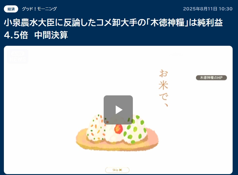 小泉「米卸は儲け過ぎ」米卸「そんな事ない」→ 利 益 4 . 5 倍 2025年8月11日 最終更新日時 : 2025年8月11日 loki.5ch.net カープドラ6西川篤夢!「日本を代表する遊撃手になりたい」【ドラフト会議2025】 カープドラ5赤木晴哉!191cm最速153キロ!佛教大の本格派右腕!【ドラフト会議2025】 カープドラ4工藤泰己!159キロ北の剛腕!【ドラフト会議2025】 カープドラ3勝田成!近畿大163cmセカンド!菊池涼介の後継者候補!【ドラフト会議2025】 カープドラ2齊藤汰直!亜大152キロエース!【ドラフト会議2025】 カープドラ1平川蓮!187cmのスイッチヒッター!立石正広を外し2度目の重複も新井監督がクジを引き当てる!【ドラフト会議2025】 【カープ実況】ドラフト会議2025!ドラ1立石正広の獲得なるか 緒方孝市カープドラ3指名で青学出禁!澤﨑俊和の逆指名まで10年間スカウト出禁 【朗報】広島、攻守最強都市だったwww 【悲報】彼女「ごめん!俺くんの貯金、情報商材に使っちゃった」→…問い詰めたらギャン泣きされたんだが俺が悪いのか? 小泉「米卸は儲け過ぎ」米卸「そんな事ない」→ 利 益 4 . 5 倍 1: 名無し 2025/08/11(月) 12:36:38.37 ID:JAzFStsQ0 BE:754019341-PLT(12346) https://news.tv-asahi.co.jp/news_economy/articles/000445646.html ■応援クリック感謝 【核保有】参政党のさや氏「核武装安上がり」発言に朝日新聞編集委員が「顔洗って出直して」指摘 ( ´_ゝ`)移民希望者に日本を紹介する仕事をしてる人「ハッピーセットを30個買う中国人とハッピーセットを1個買う日本人、どちらが経済を回してい… 海外「真のアメリカ人!」あの大物日系人が米国で見せた愛国心に全米が大騒ぎ 続きを読む 続きを見る カープドラ6西川篤夢!「日本を代表する遊撃手になりたい」【ドラフト会議2025】 カープドラ5赤木晴哉!191cm最速153キロ!佛教大の本格派右腕!【ドラフト会議2025】 カープドラ4工藤泰己!159キロ北の剛腕!【ドラフト会議2025】 カープドラ3勝田成!近畿大163cmセカンド!菊池涼介の後継者候補!【ドラフト会議2025】 カープドラ2齊藤汰直!亜大152キロエース!【ドラフト会議2025】 カープドラ1平川蓮!187cmのスイッチヒッター!立石正広を外し2度目の重複も新井監督がクジを引き当てる!【ドラフト会議2025】 【カープ実況】ドラフト会議2025!ドラ1立石正広の獲得なるか 緒方孝市カープドラ3指名で青学出禁!澤﨑俊和の逆指名まで10年間スカウト出禁 関連記事 関連記事はありません。