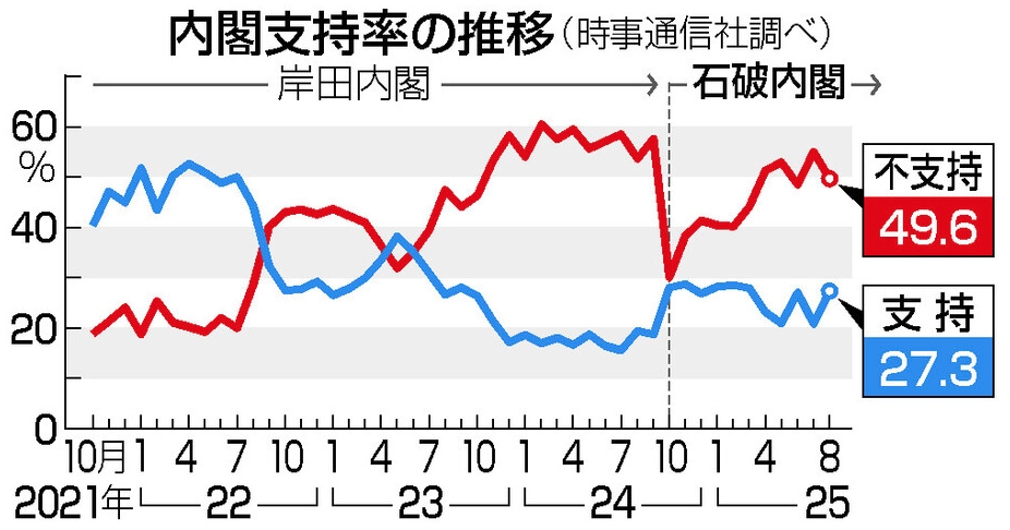 内閣支持6.5ポイント増の27.3%