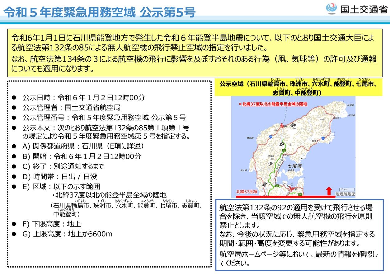 国交省、能登半島全域を「ドローン飛行禁止」に