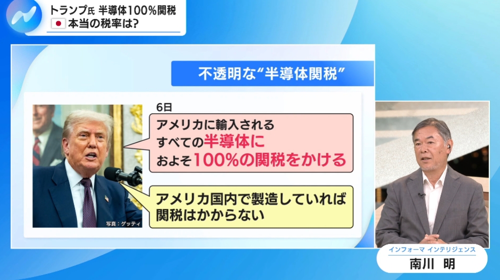 アメリカ輸入の半導体関税、来週から再来週に設定…