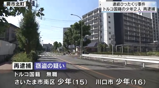 窃盗の疑いで再逮捕されたのは、いずれもトルコ国籍の無職で、さいたま市南区の15歳と川口市に住む16歳の少年2人です。