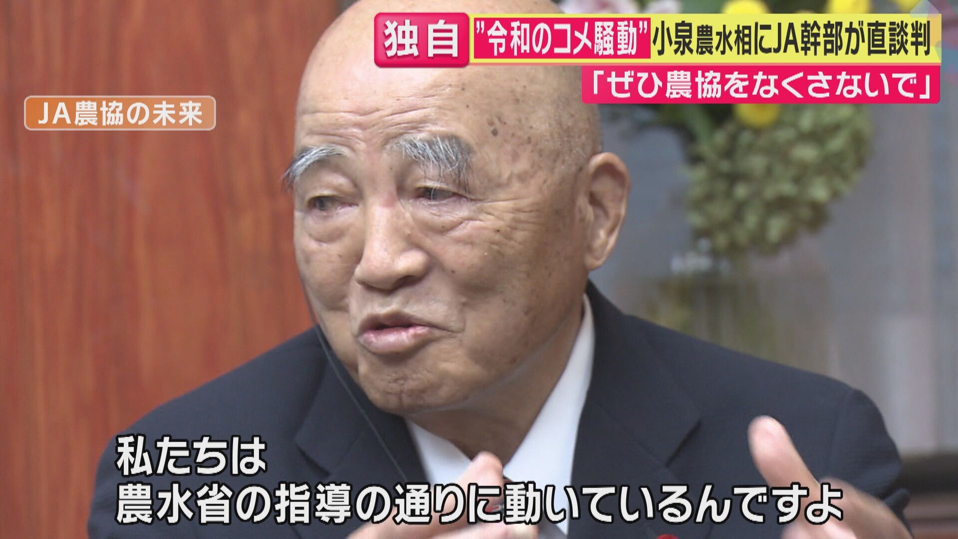 【JA直鞍(福岡)堀勝彦組合長(VTR出演)】「(小泉農水相は)農協をつぶす気か」「1回、大臣に会わせたほうがいいよ、俺を。会いたい…」【小泉進次郎農水相(6月30日の生出演より)】「私が農協をつぶそうとしているということはない。ただ、つぶれるかどうかは、農家の皆さんに選ばれるかどうかだけだと思います。福岡の堀組合長、ぜひお会いしたい」