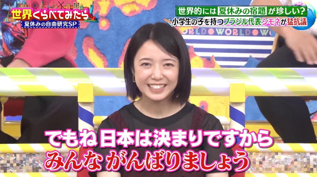 女優の上白石萌音(27歳)が、8月20日に放送されたバラエティ番組「世界くらべてみたら」(TBS系)に出演。海外では夏休みの宿題がない国もあるが、日本の人に向けて「がんばりましょう」と伝え、「“せかくら”の良心!」という声が上がった。