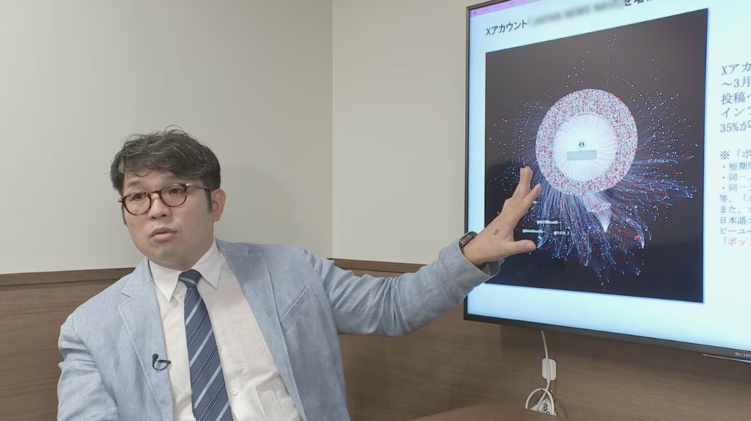 情報空間の分析を専門とする会社「Japan Nexus Intelligence」の代表で、平デジタル大臣に情報提供をしたという髙森雅和氏は、Xのあるアカウントの投稿が拡散される過程を分析したところ、その約35%がプログラミングによるものだった可能性があるという結果が出たと話す。プログラミングによる拡散とは何なのか。