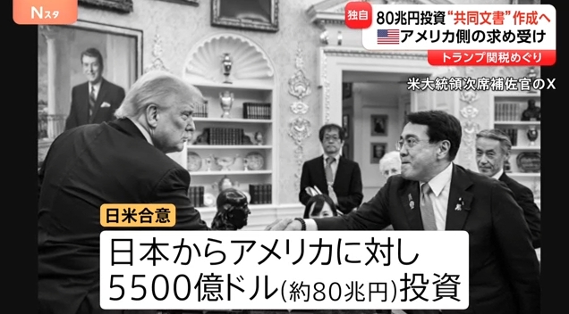 【トランプ関税】日本政府が方針転換、共同文書 米国側の要望「80兆円投資の約束を文章で約束しろ」