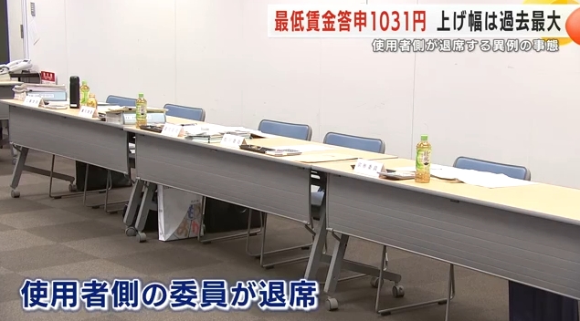 【緊急】上げ幅は過去最大の最低賃金答申1031円 県の審議会「使用者側全員が採決の前に退席する異例の事態」