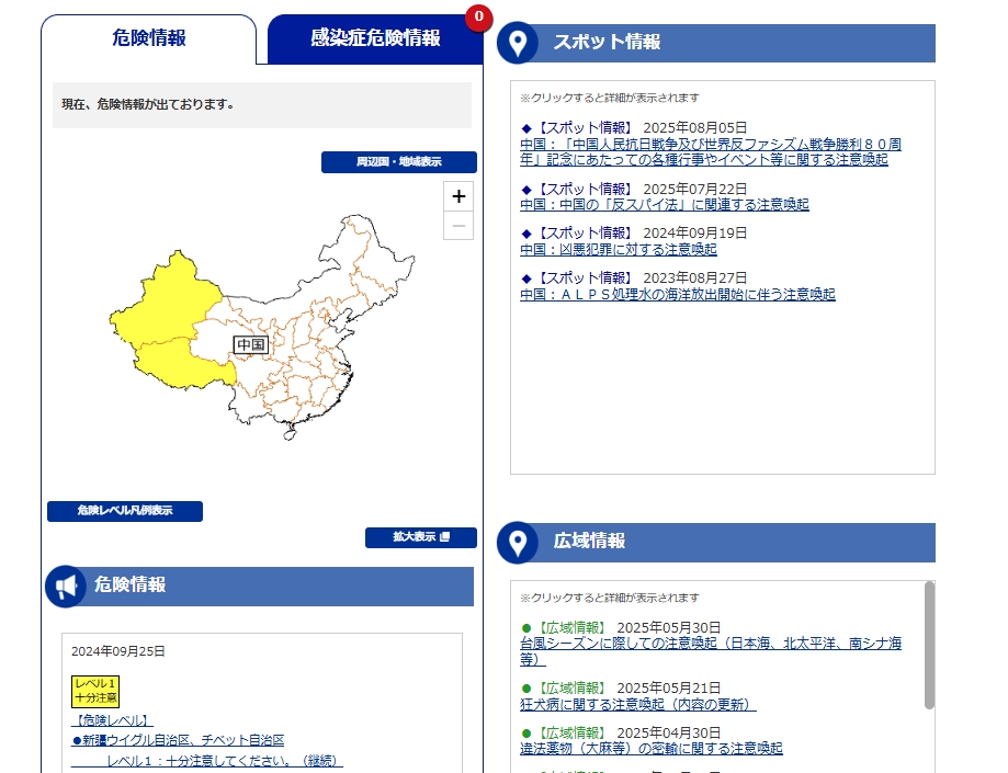 中国政府が「抗日戦争勝利記念日」と定める9月3日を控え、在中国日本大使館は8月27日、在留邦人らに向け、「中国人の反日感情が特に高まりやすい」として、「周囲に聞こえる声量で日本語を話すことは極力控える」などとする外出時の安全策をホームページ(HP)上で公表し、注意を呼びかけている。日本大使館の呼び掛けに先立ち、日本の外務省も今月5日、HPで同様の呼び掛けを行った。外務省はさらに、9月3日を含め、「注意を必要する日」として以下の日付を挙げている。