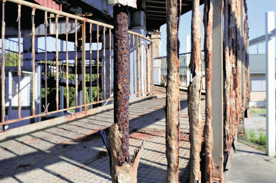 太平洋沿岸にある千葉県匝(そう)瑳(さ)市の今泉浜地区に整備された津波避難タワーの腐食が進み、2015年の完成から10年しかたっていないのに使用不能になっている。