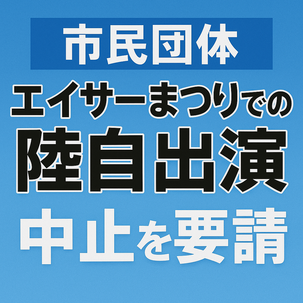 琉球新報によると、沖縄市で開催予定の「全島エイサーまつり」に陸上自衛隊の出演が計画されていることに対し、地元の市民団体が中止を求める要請書を提出した。団体は「県民感情からして許されない」と強調し、伝統文化に軍事色を持ち込むことへの反発を示した。