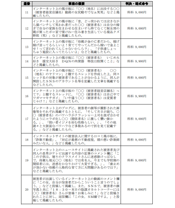 ⇒罰金10万円SNS等のインターネット上の侮辱罪で、実際に刑事罰として罰金や科料に処されているケースもそれなりにあるようです。