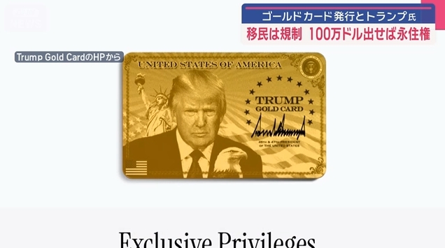 【速報】100万ドル出せば永住権を認める「ゴールドカード」の発行にトランプ大統領が署名