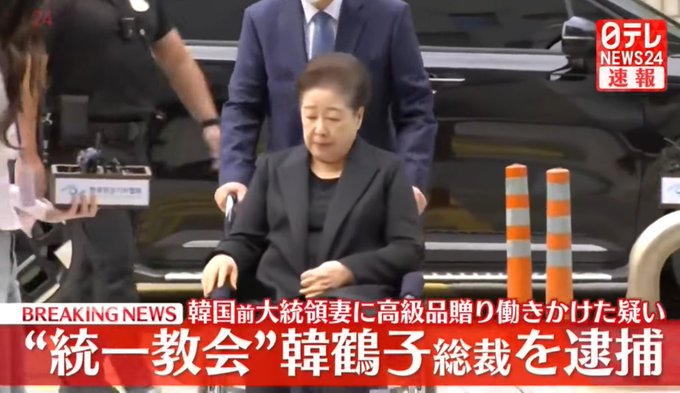 日テレNEWSによると、韓国の捜査当局は世界平和統一家庭連合(旧統一教会)の韓鶴子総裁を逮捕した。