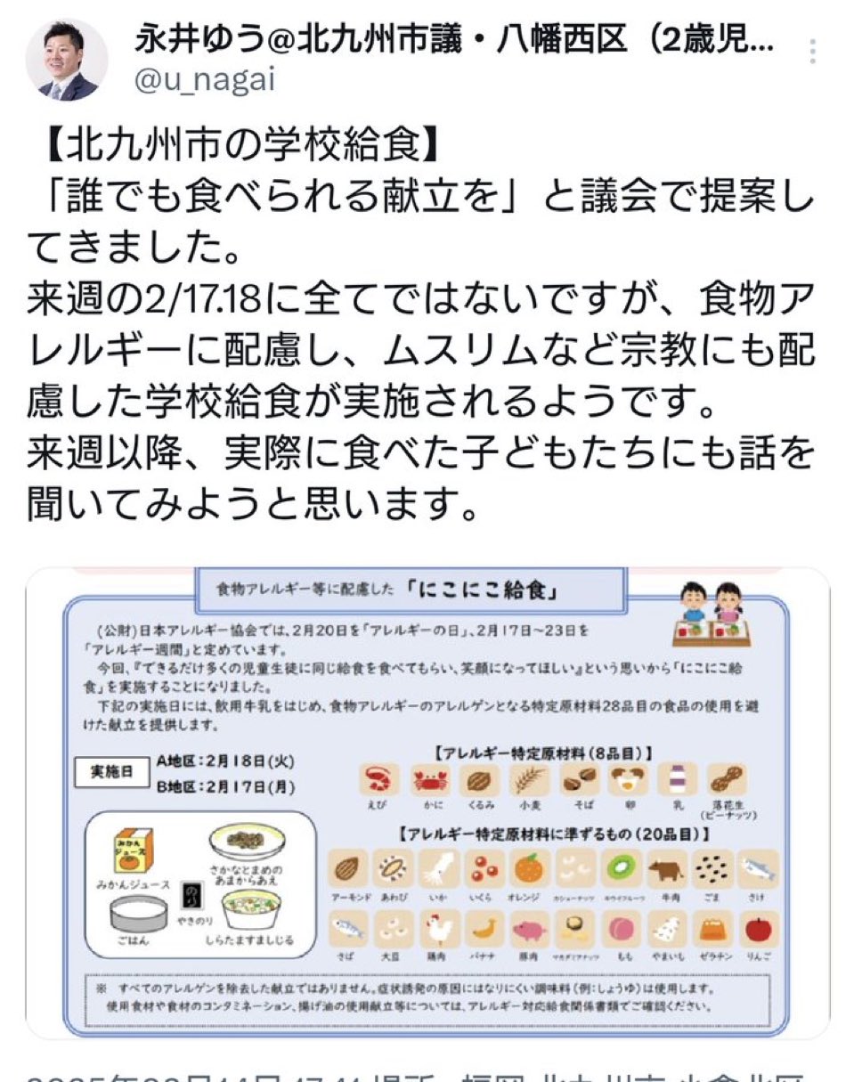【抗議苦情殺到】北九州市「陳情は採択されておらず、ムスリム対応の給食実施の事実はない。1度実施した『にこにこ給食(28品目対応)』が曲解されている」