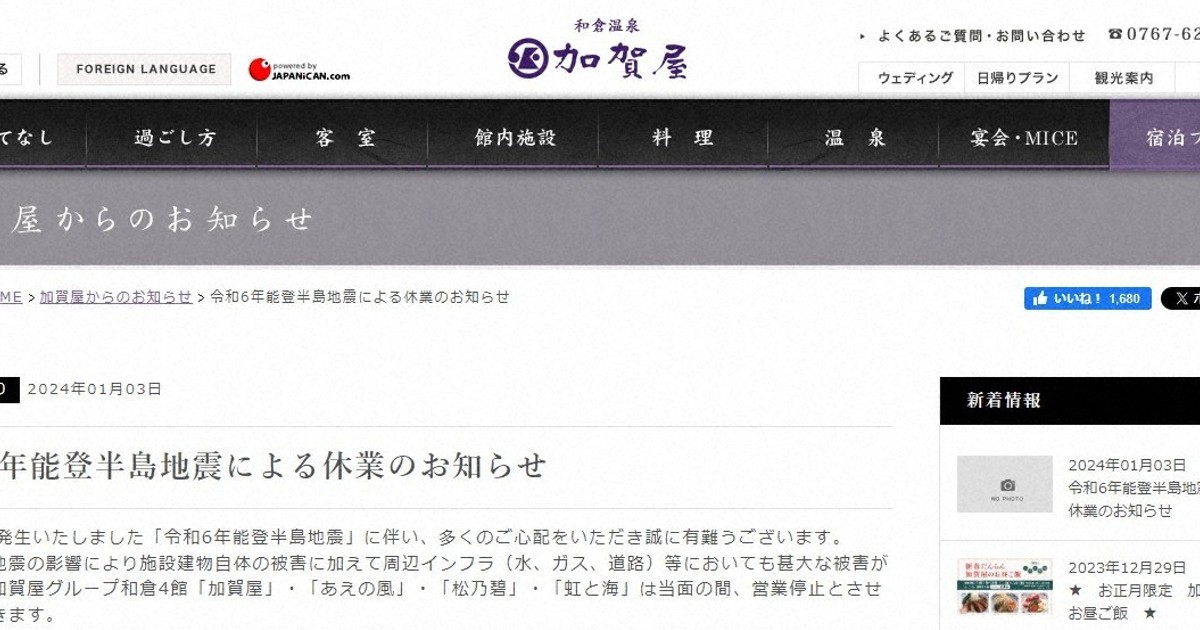 輪島朝市全焼、和倉温泉壊滅、トトロ岩崩落→能登の観光名所全滅やん・・・