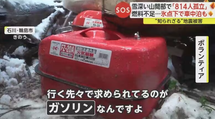 ヘリでの輸送が認められていない、ガソリンや灯油の不足。車中泊をしているという男性は、車内の暖房をつけずに氷点下に達する寒さにさらされたまま、夜を明かしているという。