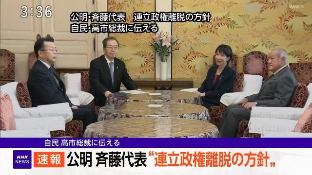 公明の離脱は与党基盤を揺らしかねず、自民としては立て直しを迫られる。