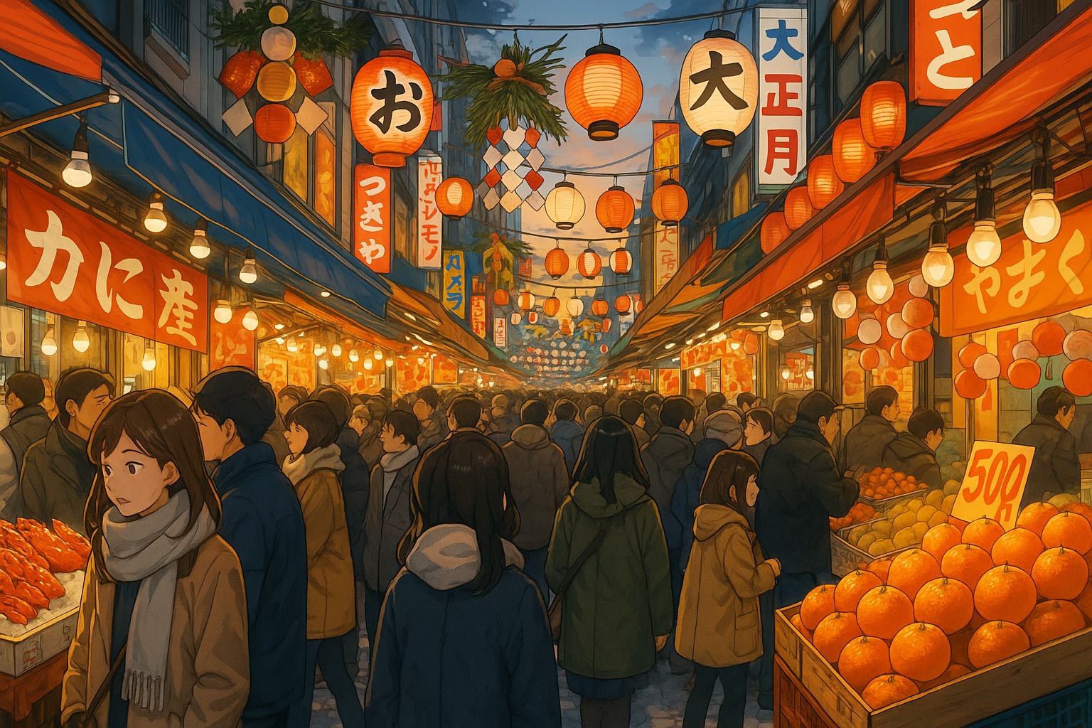 魚屋や乾物店が並び、年末の買い出し客でごった返す――そんな日本らしい光景が、