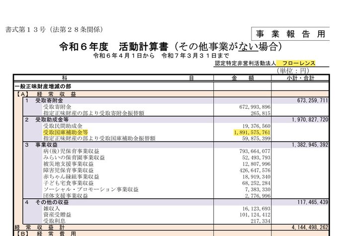 【18億9千万】受取国庫補助金”等”をフローレンスへ支給していたのは公明党だった・・・
