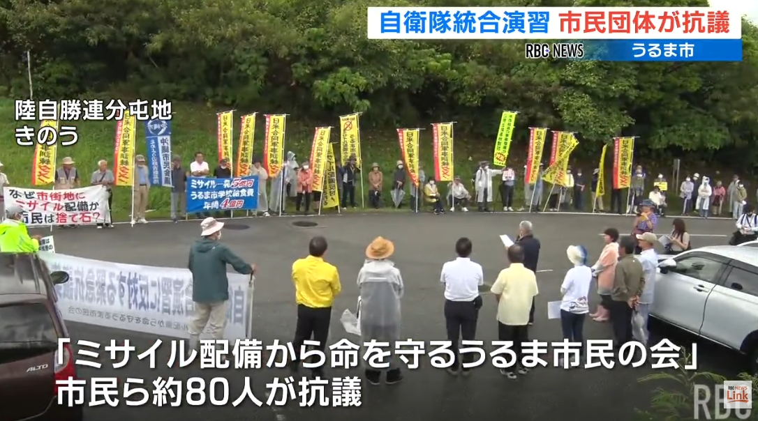 沖縄県うるま市では19日、市民団体が抗議集会を開き中止を求めた。抗議を行ったのは「ミサイル配備から命を守るうるま市民の会」で、
