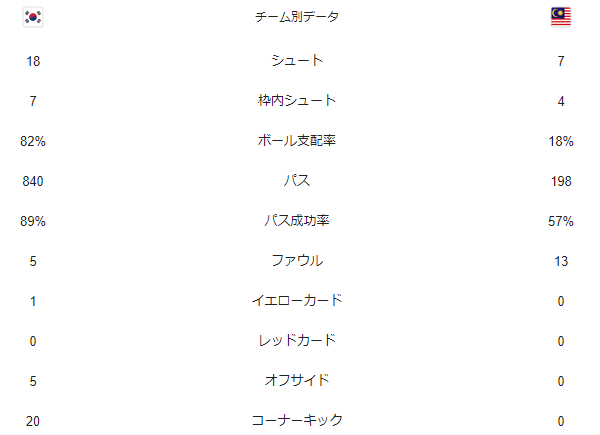 韓国 3-3 マレーシア