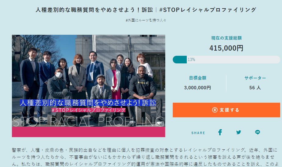 【画像】弁護士 「外国人が職質を受けない社会に変える」→「ってことで提訴します、クラファンヨロ」