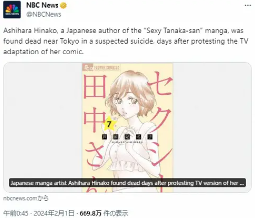 原作者の芦原妃名子さん急死 全米報道、NBCや専門誌も「全面的なソーシャルメディア騒動に発展、日テレが芦原さんを支持せず、声明も不十分だった」
