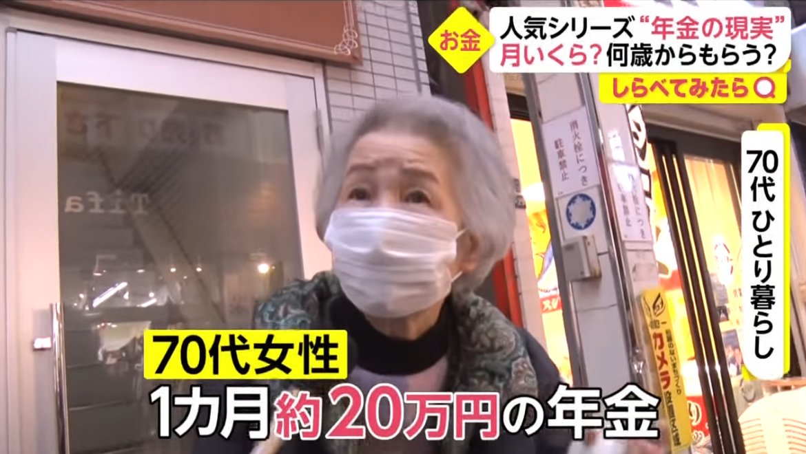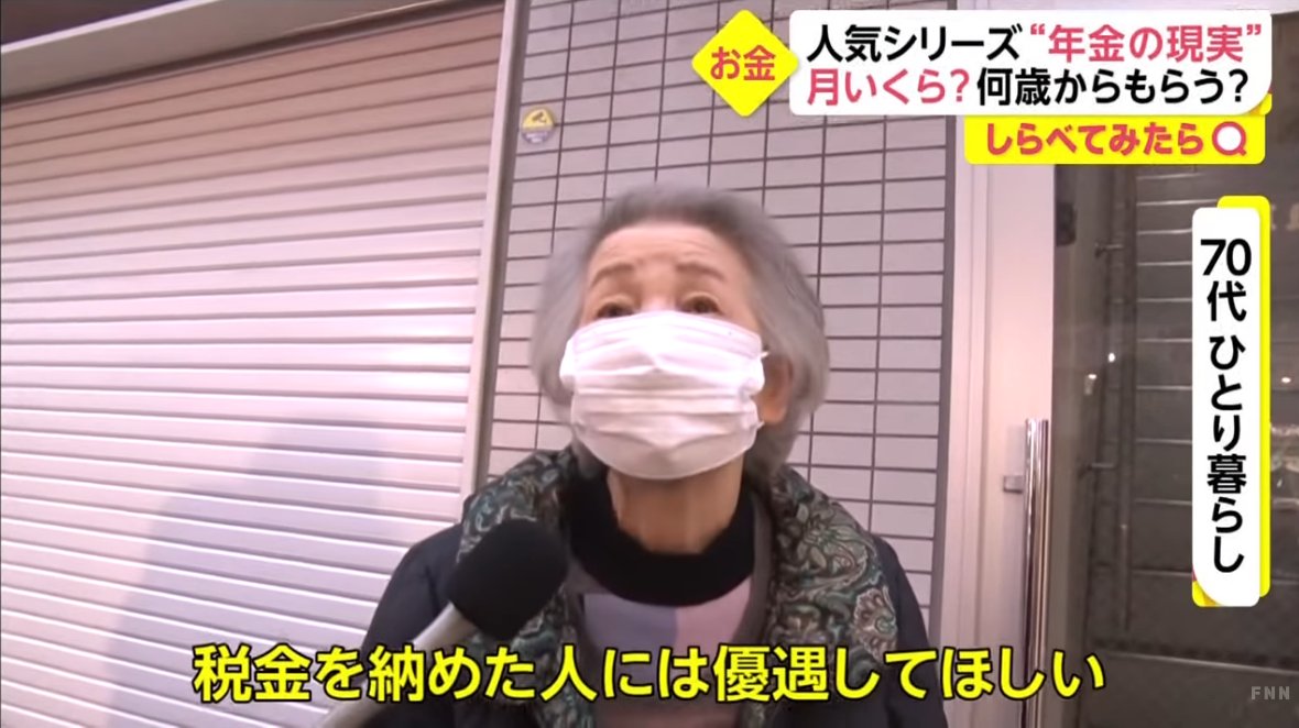 【画像】70代女性「年金は月20万しかない。キチンと税金を納めてきた人達を優遇して欲しい」