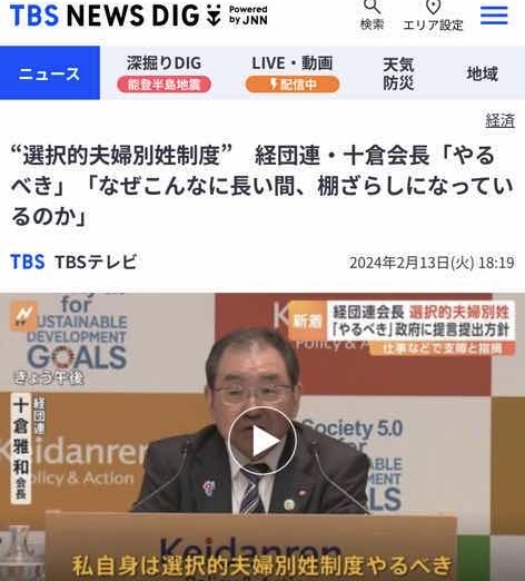 【悲報】経団連会長、まるで天下取り 経済界の幅を超え国の制度にまで言及「選択的夫婦別姓制度やるべき」