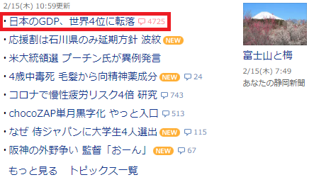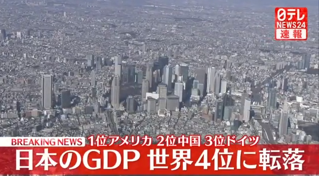 【速報】Yahoo!や報道各社がトップニュース扱い「2023年の日本の名目GDP 世界3位から4位に転落」ドルベースで換算すると日本はドイツに抜かれ4位へと転落しました