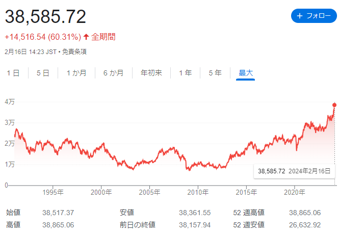 東京株式市場で日経平均株価が上昇を続け、ついに史上最高値更新という歴史的瞬間を迎えるかもしれないと、ネット上が盛り上がっている。