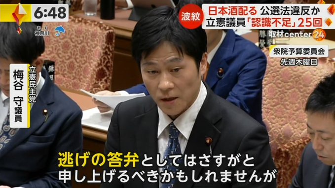 【日本酒疑惑】立憲・梅谷議員、同じ単語リピートで壊れた模様 先週は政府に対して「逃げの答弁はさすが」と息巻いていた模様