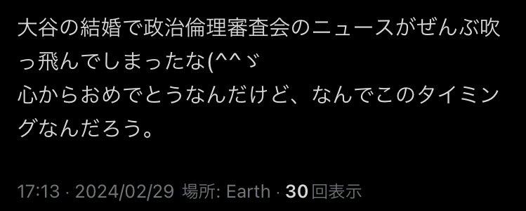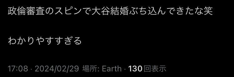 パ「大谷結婚発表は政倫審から目を逸らさせるためのスピン」