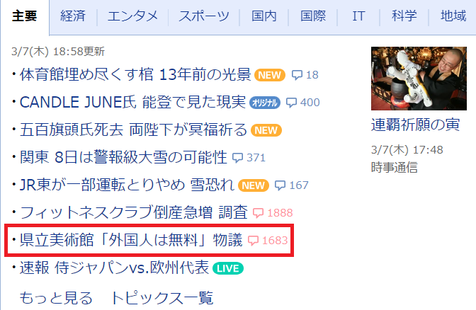 【速報】奈良県立美術館の観覧料、日本人だけ有料が炎上!Yahoo!トップに登場で県は見直し検討「16年前から誘致の為に、効果不明」