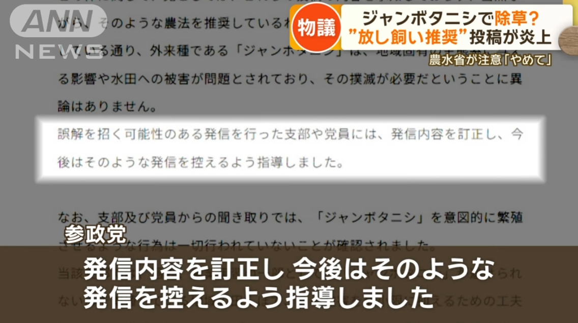 脱サラ農家(参政党の党員)、ついに地上波デビュー「無農薬を目指すための対策、実は『南米の悪魔』 結局今度は駆除の薬代など年間100万円」