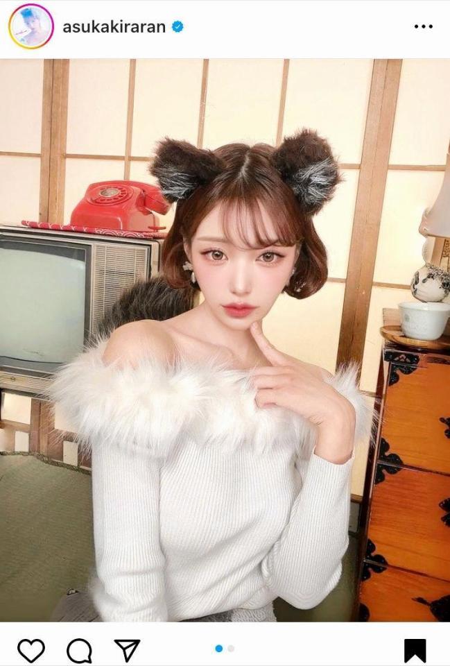 明日花キララ「どんぎつね」姿に「CM出て」の声殺到 ふわ耳しっぽ&白オフショルが「かわいすぎ」