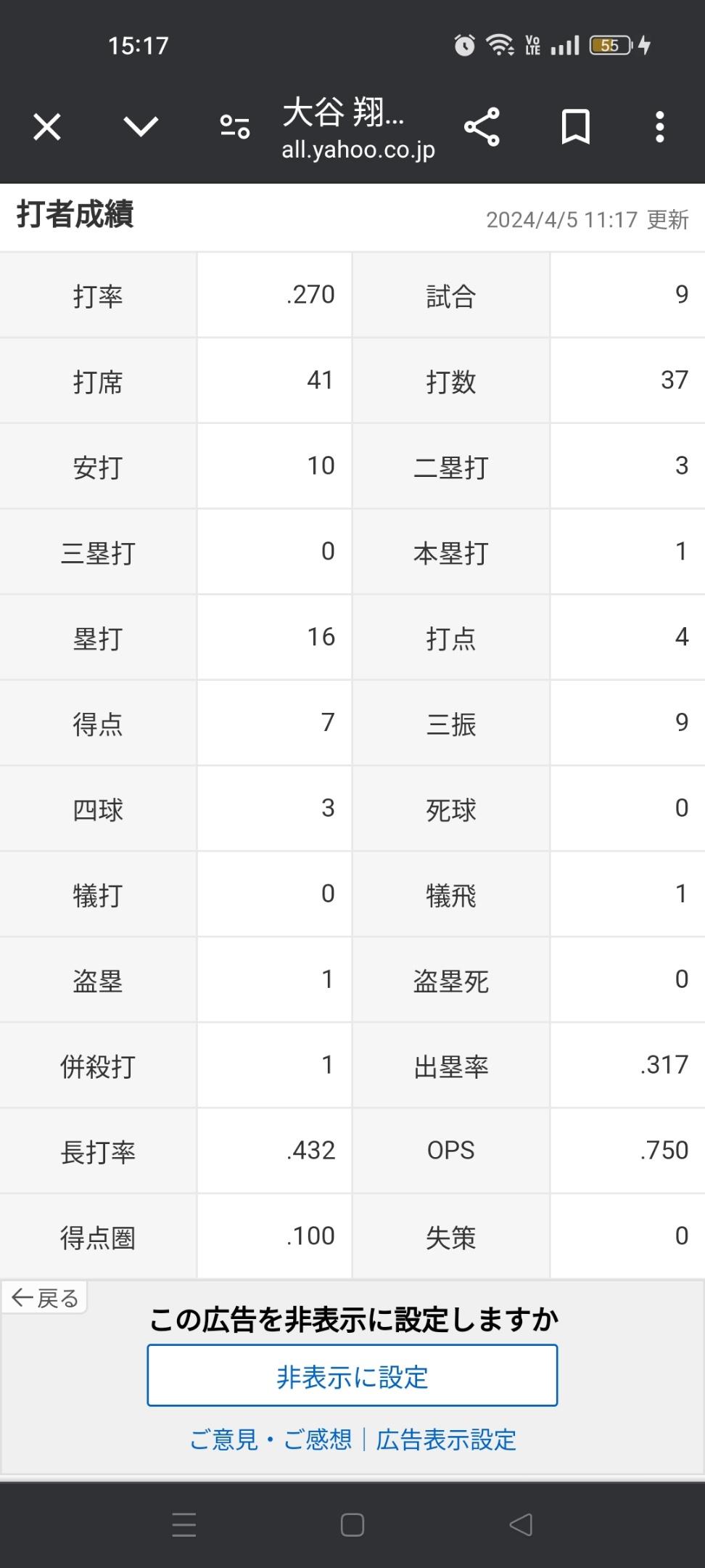 大谷翔平「打率.270(37-10)1本 4打点 OPS.750 得点圏打率.100(10-1)」←こいつの率直な感想www