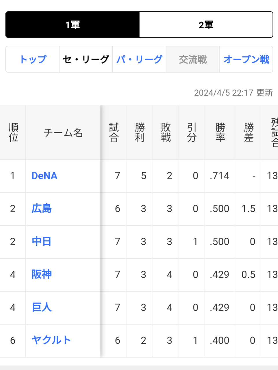 中日よりも下が3球団もある