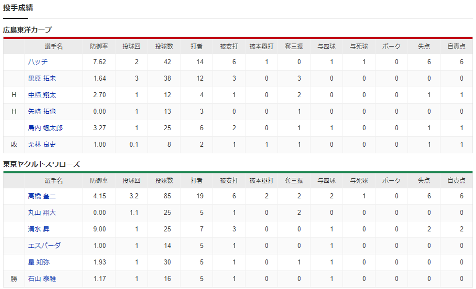 カープ栗林、サンタナにサヨナラ弾被弾。二俣プロ初本塁打!黒原3回無失点&プロ初安打の適時3塁打!菊池1号2ラン!野間猛打賞も乱打戦で打ち負ける【広島8-9xヤクルト/試合結果】