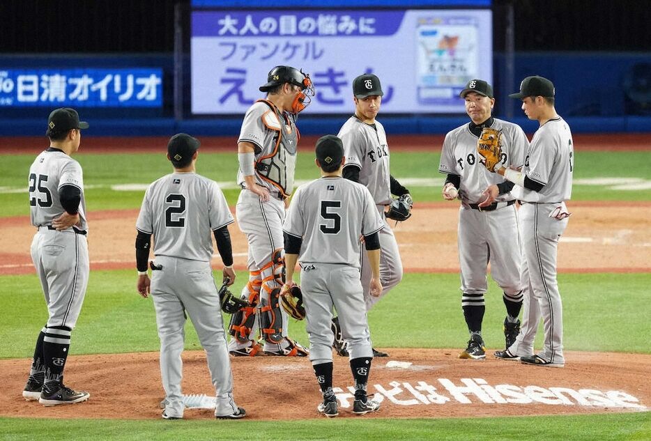 中軸の岡本和、丸、大城卓はそろって4の0と振るわず、打線のつながりを欠いた。