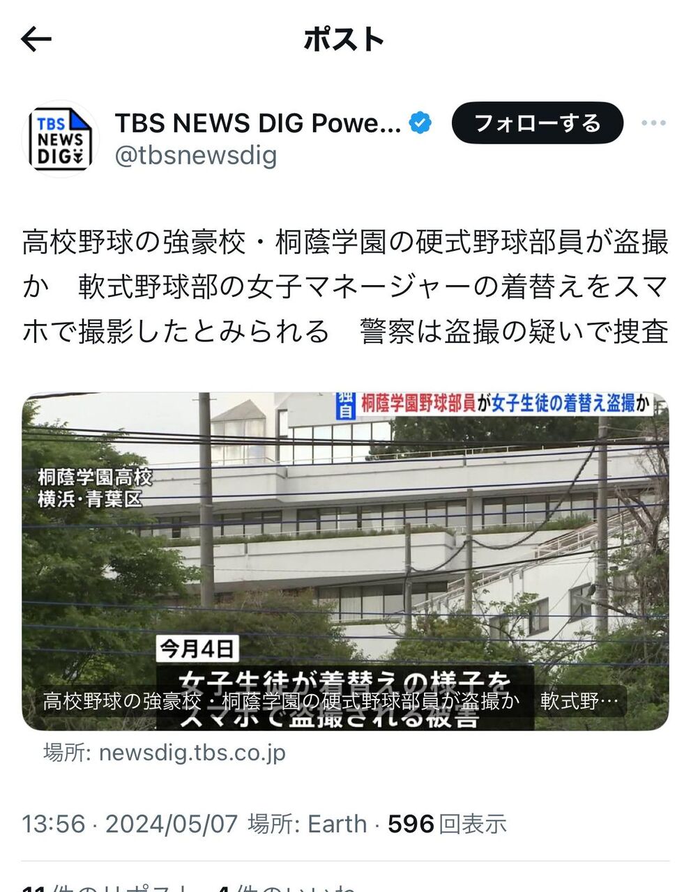 【悲報】桐蔭学園の硬式野球部員、女子マネの着替えをスマホで盗撮か