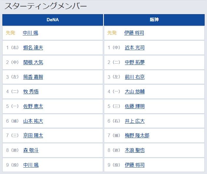 【DeNA対阪神7回戦】3(左) 前川 右京 6(右) 井上 広大