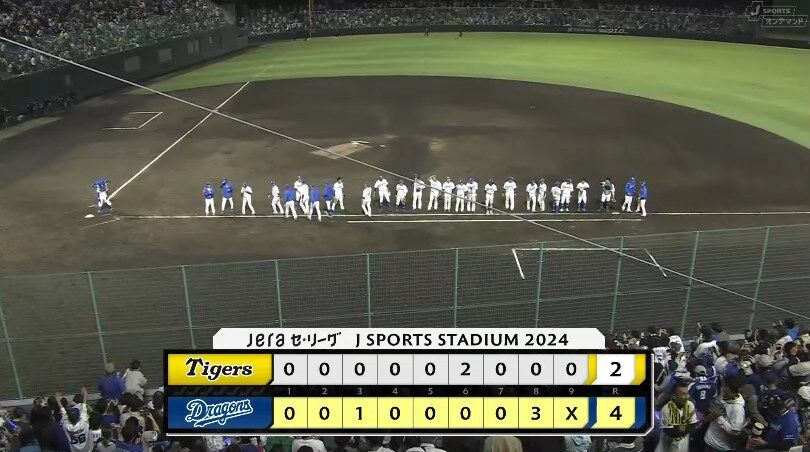 【中日対阪神7回戦】中日が4-2で阪神に逆転勝利し4位浮上!8回にカリステ同点打&石川昂が決勝打!阪神は逆転負けで首位陥落