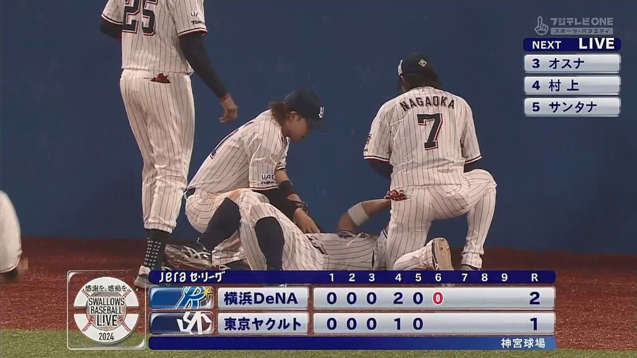 【ヤクルト対DeNA10回戦】ヤクルト・丸山和郁が緊急退場 フェンスに激突し担架で運ばれ、本拠地騒然