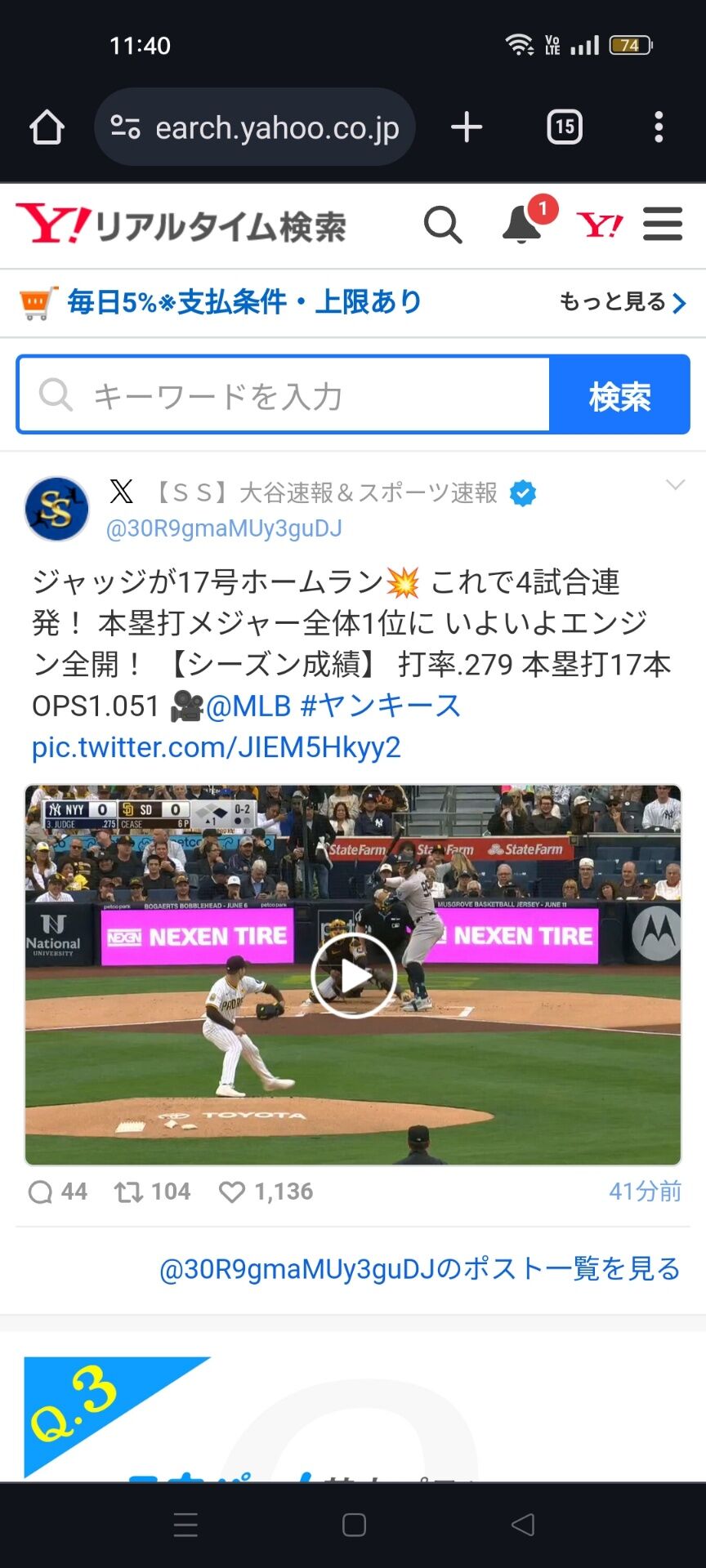 pic.twitter.com/JIEM5Hkyy2— 【SS】大谷速報&スポーツ速報 (@30R9gmaMUy3guDJ) May 26, 2024