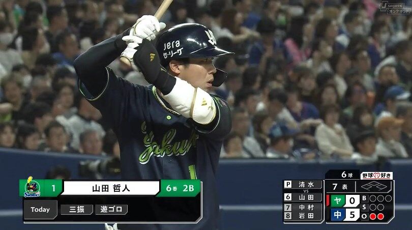 山田哲人(31) .186(59-11) 1本 5打点 14三振 4四死球 0盗塁 出塁率.234 長打率.254 OPS.489