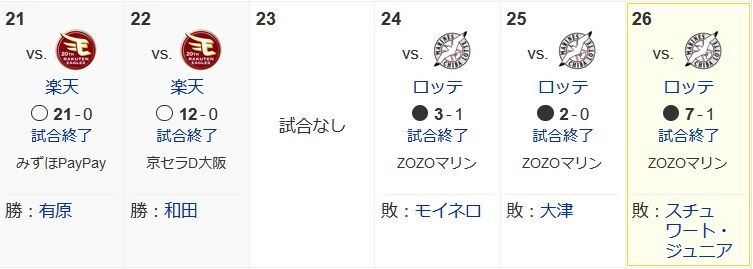 ソフトバンクホークス、最近の5試合で35得点12失点と相手チームを圧倒